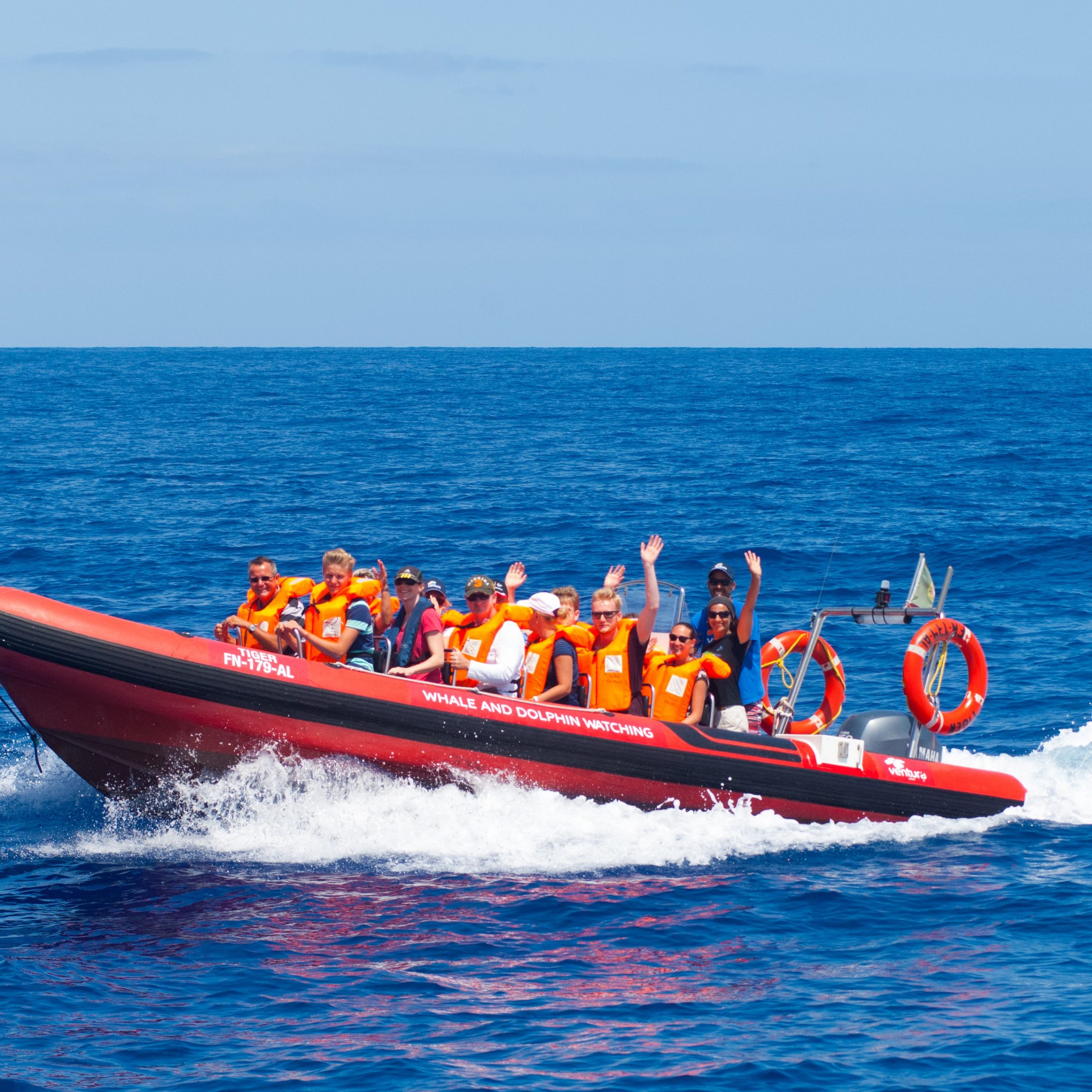 Trips are made in fast, semi-rigid type boats with a capacity for 12, 14 0r 18 people. With these types of boats, we can assure you that you get out to the dolphins and whales in the shortest possible time. these are the only two tours that offer swimming with dolphins in Madeira.